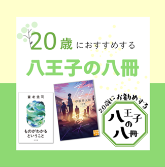 20歳になられた皆さんおめでとうございます!八王子で未来を描く人、八王子の思い出を胸に旅立つ人、八王子に未来を求め戻ってくる人、全ての皆様が実りある人生を送ることができるよう、これから切り拓いていく人生の様々な節目や場面で、応援し力を与えてくれる八冊の本を紹介します。